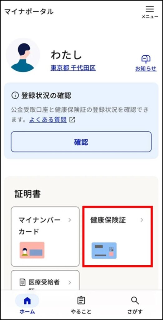 マイナ保険証を利用する登録がお済みの方は、ご自身が加入している医療保険の資格情報をマイナポータルから確認・取得することができます。